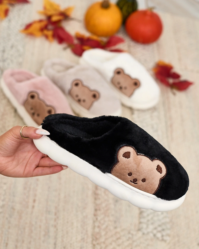 Royalfashion Damskie futrzane kapcie z misiem w kolorze czarnym Fetemes