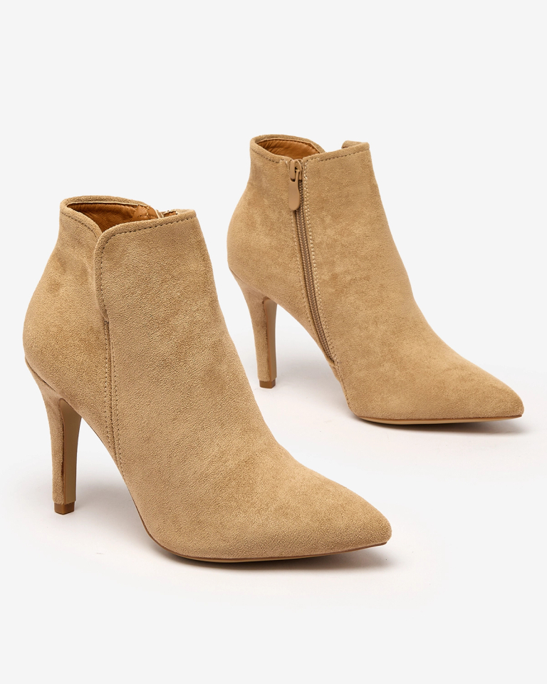 • Элегантные сапоги на шпильке из органической замши. Заостренный носок, тканевая стелька, застежка на молнию сбоку. Отличная обувь для элегантных осенних нарядов!