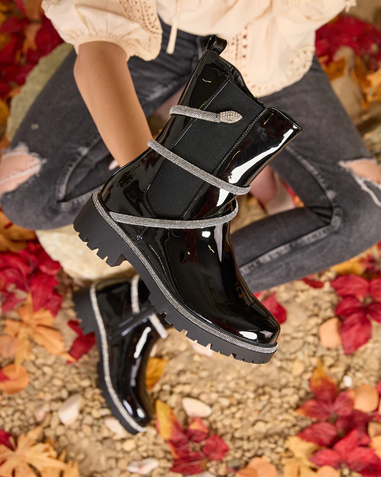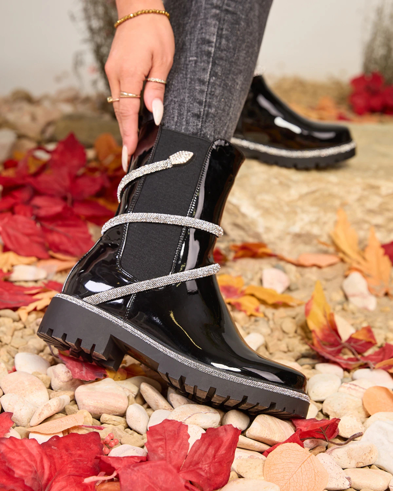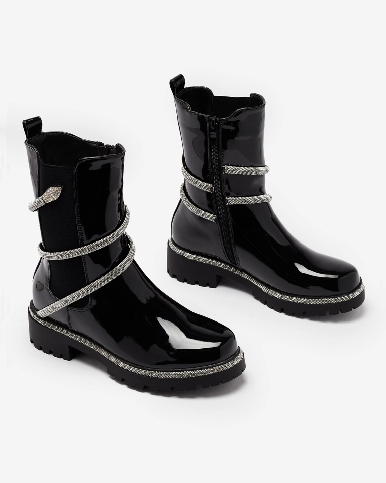 Royalfashion Черные женские лакированные сапоги с модным украшением Frosty Glam