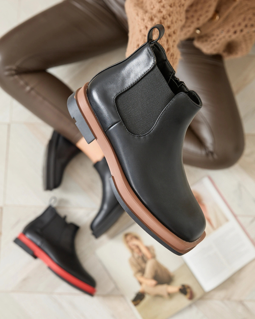 Royalfashion Черные женские сапоги а'ля соболь с коричневой вставкой Wererix