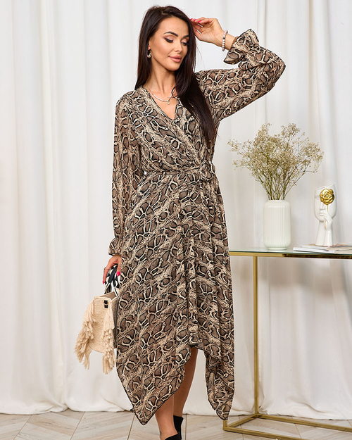 Royalfasion Темно-коричневое женское длинное платье с модным принтом