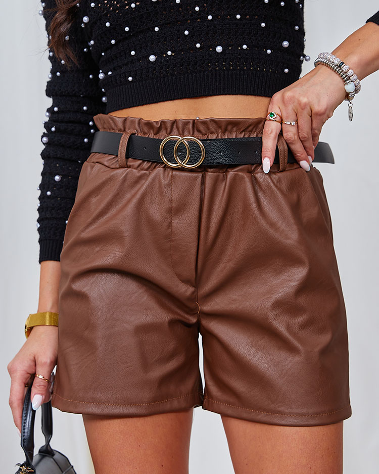 Royalfashion Женские короткие шорты из экокожи коричневого цвета