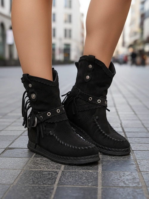 - Уникальные женские сапоги со скрытым якорем. Модель "слип-он", выполненная из экокожи с замшей, что придает им элегантный вид. Внутри имеется тканевая стелька. Все дополнено декоративными ремешками и кисточками. Хит этого сезона!