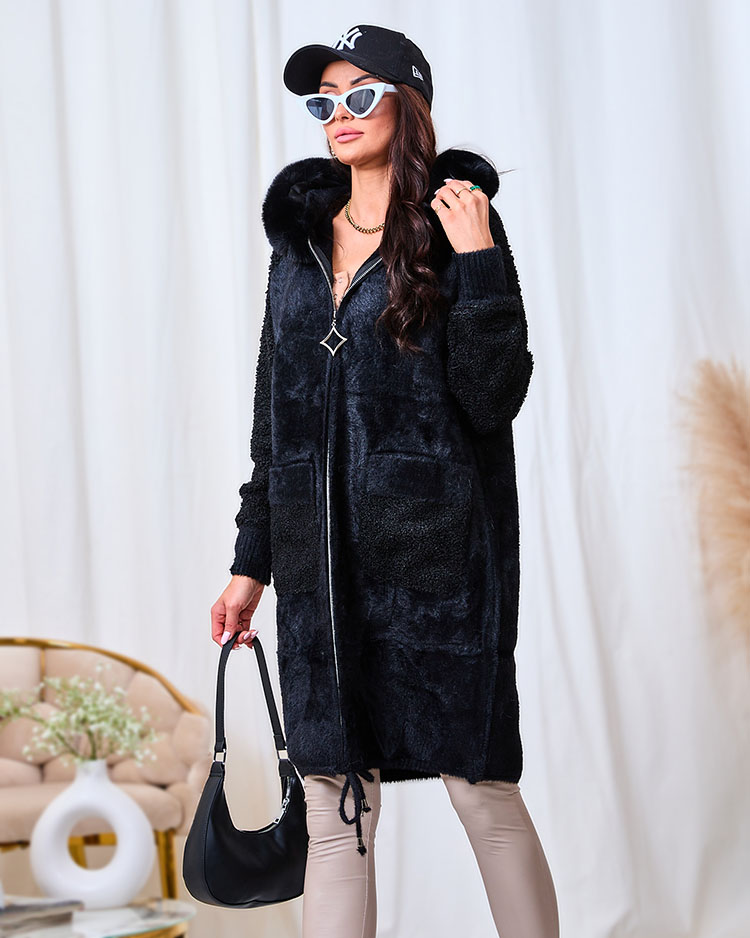 Royalfashion Черное женское пальто с имитацией меха