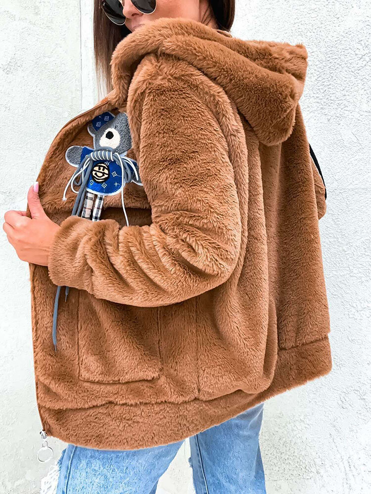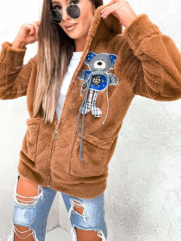 • Теплый и мягкий флис, идеально подходящий для холодных дней. Украшен уникальным голубым мишкой, который придает шарм и оригинальность. С капюшоном, карманами спереди и практичной застежкой-молнией.
