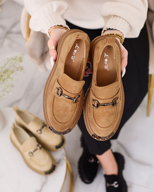 Royalfashion Женские мокасины из экозамши светло-коричневого цвета Metaqom