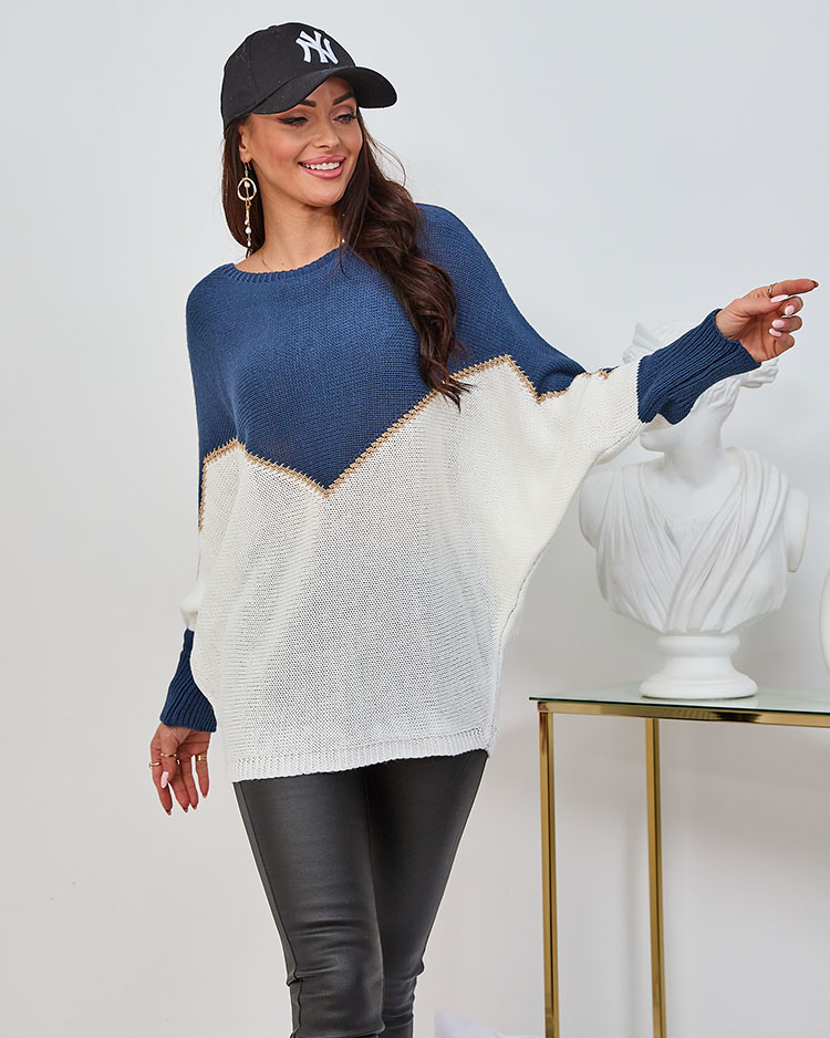 Royalfashion Женский темно-синий и кремовый свитер