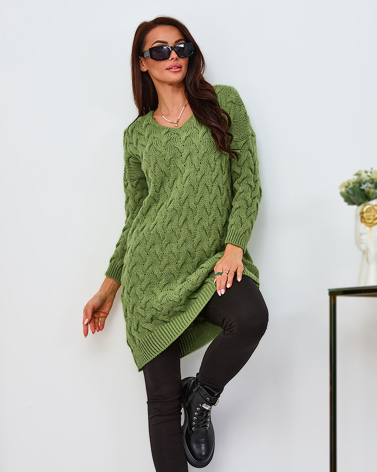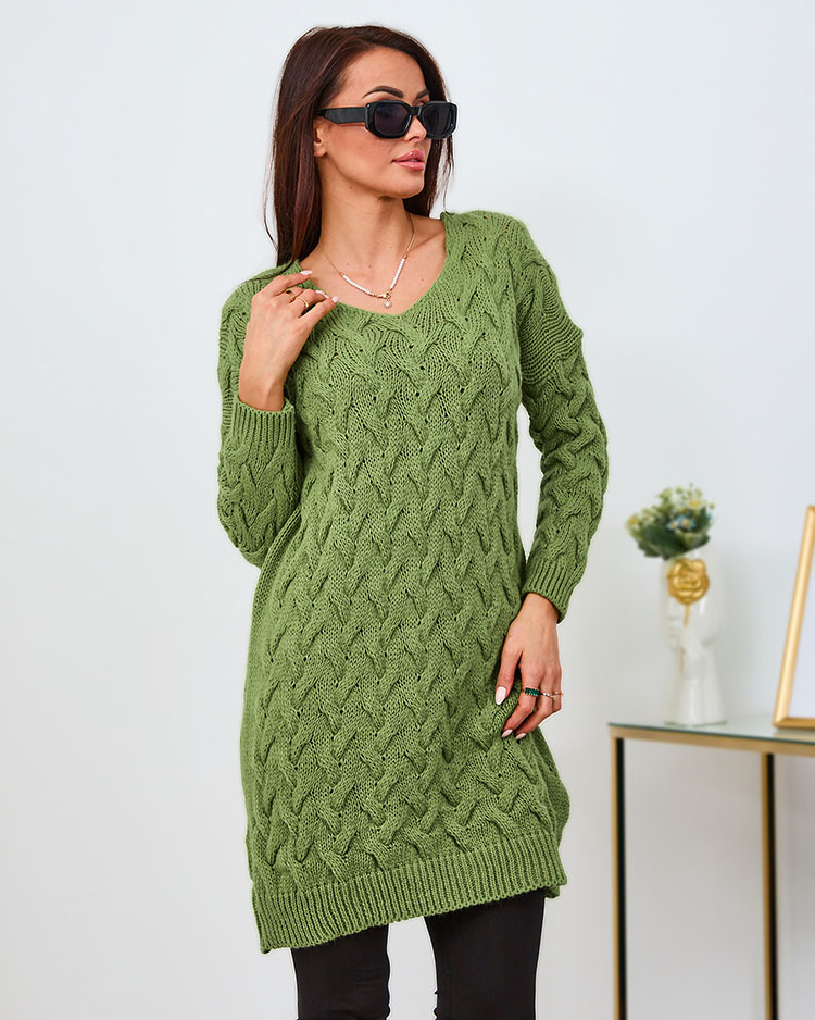 - Женское платье-свитер длиной до колена с длинными рукавами и вырезом сердечком. Выполнено из приятного материала. Украшено интересной тесьмой по всей длине. Must have этого сезона! ПРИМЕЧАНИЕ: Точность измерения (+/-) 1 см. Размеры измерены в горизонтальн
