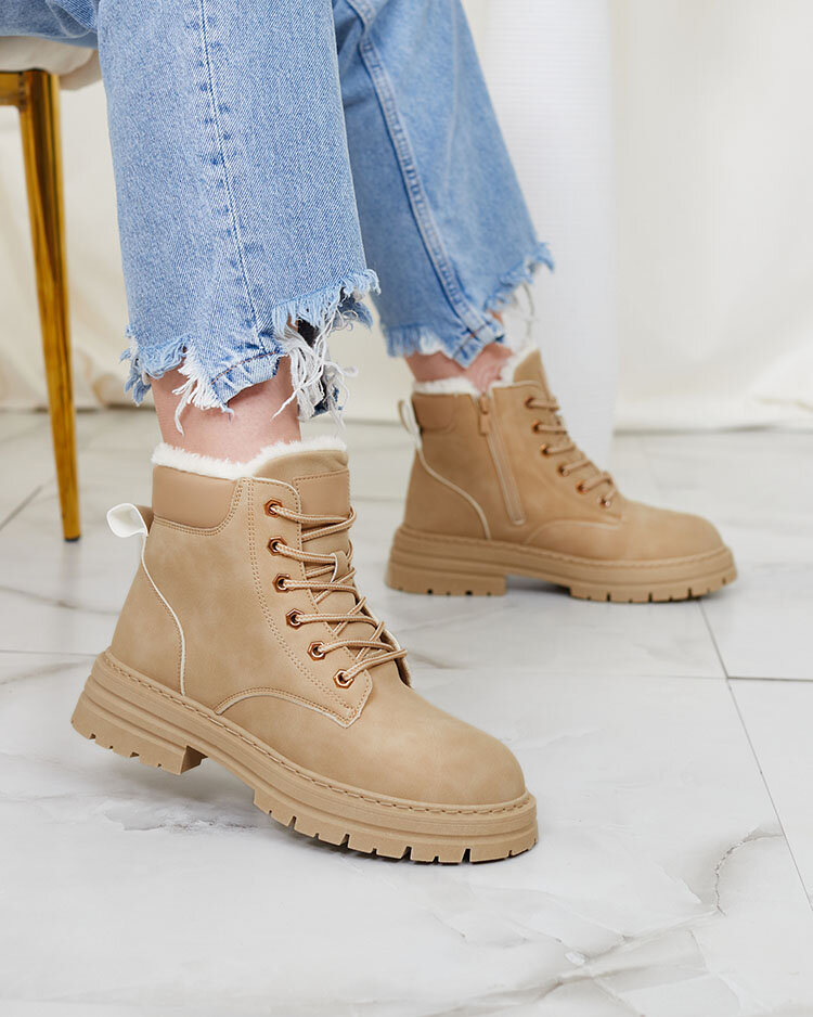 • Нестареющие женские сапоги а'ля трапперы. Верх на шнуровке выполнен из матовой экологичной кожи, середина утеплена мягким мехом. Отличное дополнение к повседневным нарядам!
