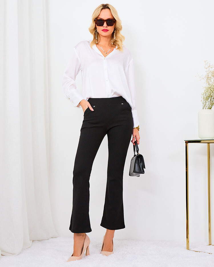 Royalfashion Черные женские леггинсы из экокожи a'la bells