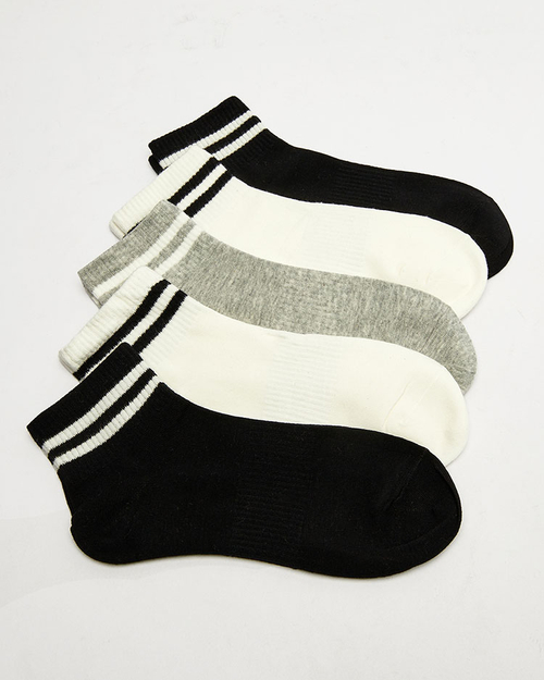 - Комплект женских носков 5/упак, выполненных из приятного хлопкового материала, отделанного декоративными полосками. Они идеально облегают ногу, обеспечивая свободу движений и повседневный комфорт.