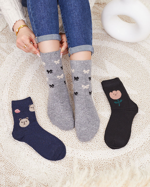 - Уникальные женские длинные носки из эластичной, мягкой ткани, отделанные очаровательным рисунком. Теплые и удобные - отличный вариант для осенних вечеров!