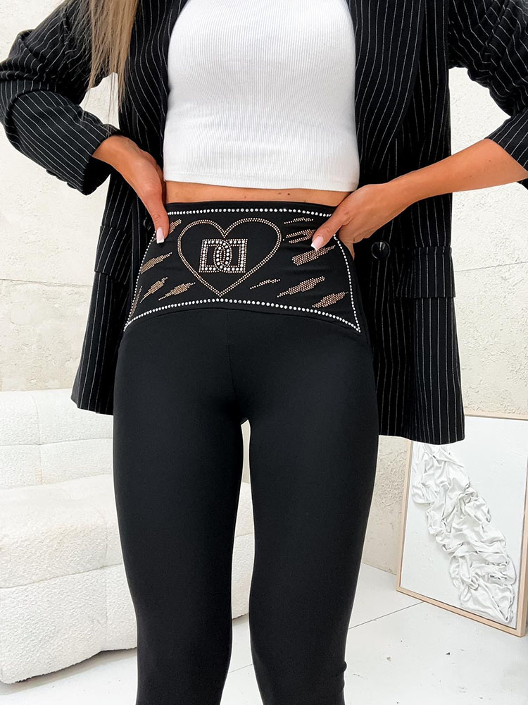 • Стильные леггинсы из эластичной ткани. Широкий эластичный пояс, украшенный цирконами, обеспечивает комфорт при ношении. Идеально подходят для активного дня!