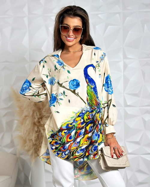 • Узорчатое женское платье-туника а'ля с вырезом сердечком и длинными рукавами. Выполнено из приятного материала. Модель с асимметричным низом. Почувствуйте весеннюю атмосферу вместе с ним!