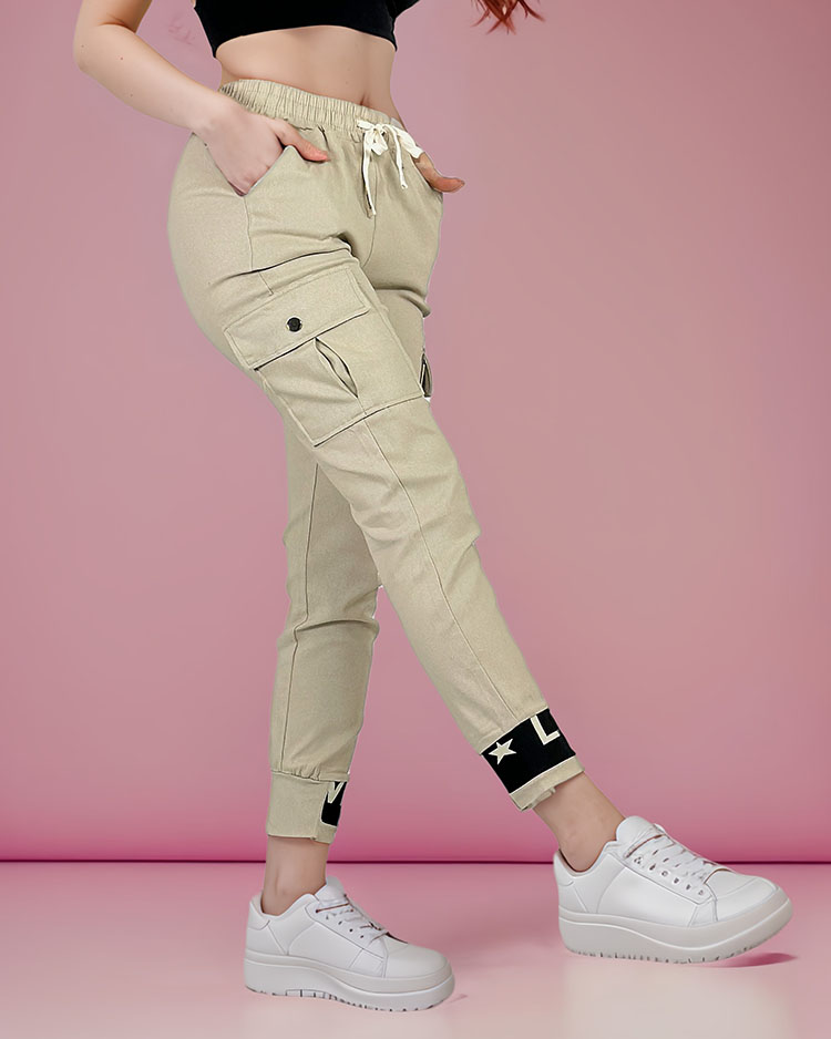 - Удобные женские боевые брюки из приятной на ощупь ткани. Модель имеет 4 кармана, в том числе по бокам. Брюки имеют резинку и завязку на талии.