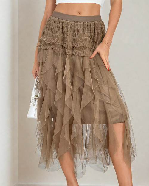 - Нестареющая женская двухслойная юбка-миди. Модель имеет эластичный пояс, который идеально подчеркивает талию. Эта юбка станет отличным акцентом вашего повседневного образа!