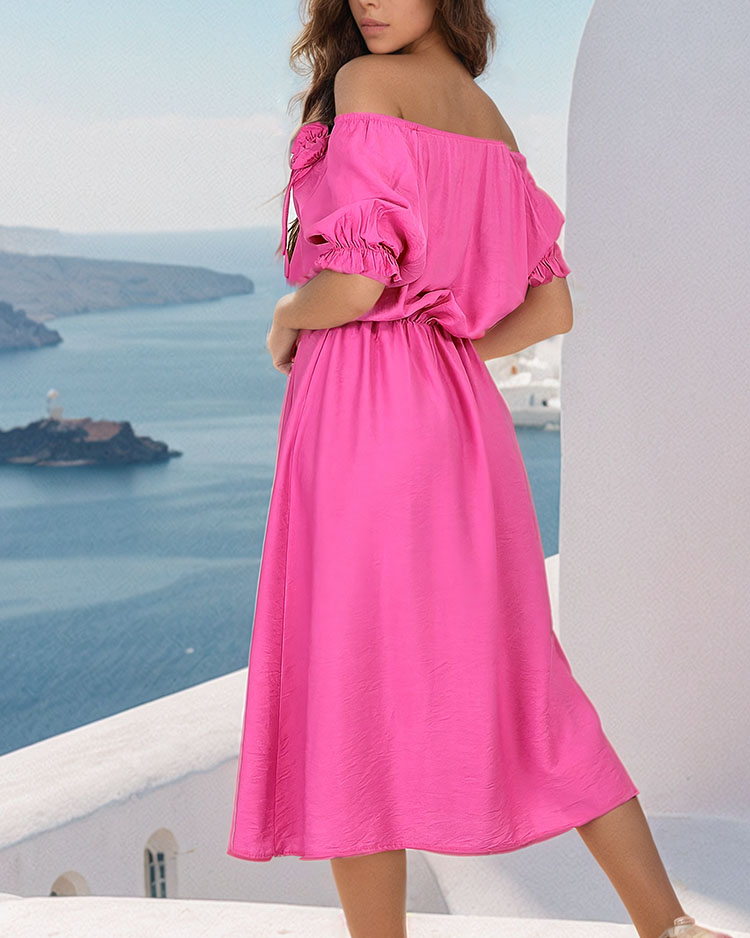 - Легкое женское платье длины миди с декоративными цветами, выполненное из приятной на ощупь ткани. Модель с круглым вырезом а'la hiszpanka и эластичным поясом. Носите его с босоножками! ПРИМЕЧАНИЕ: Точность измерений (+/-) 1 см.