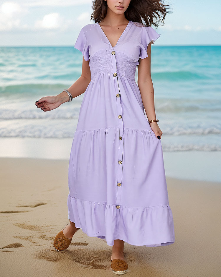 • Женское платье-миди, с короткими рукавами и V-образным вырезом горловины. Дополнительно украшено пуговицами. Must have этого сезона! ПРИМЕЧАНИЕ: Точность измерения (+/-) 1 см. Размеры измерены в горизонтальном положении.