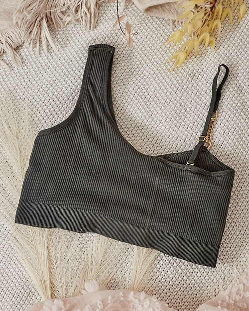 Royalfashion Женский ребристый бюстгальтер с декоративной бретелью