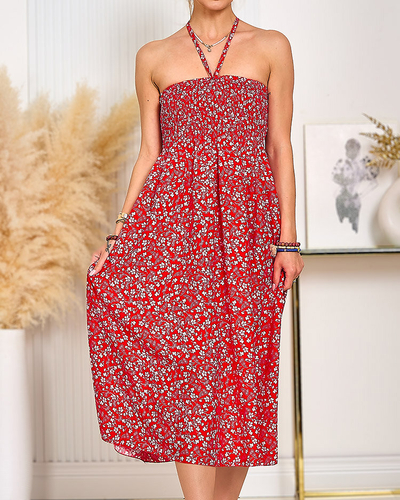 • Уникальное воздушное платье длиной до колена. Модель без бретелек, имеет резинку на бюсте и завязки на шее. Идеальный выбор для летних дней! ПРИМЕЧАНИЕ: Точность измерения (+/-) 1 см.