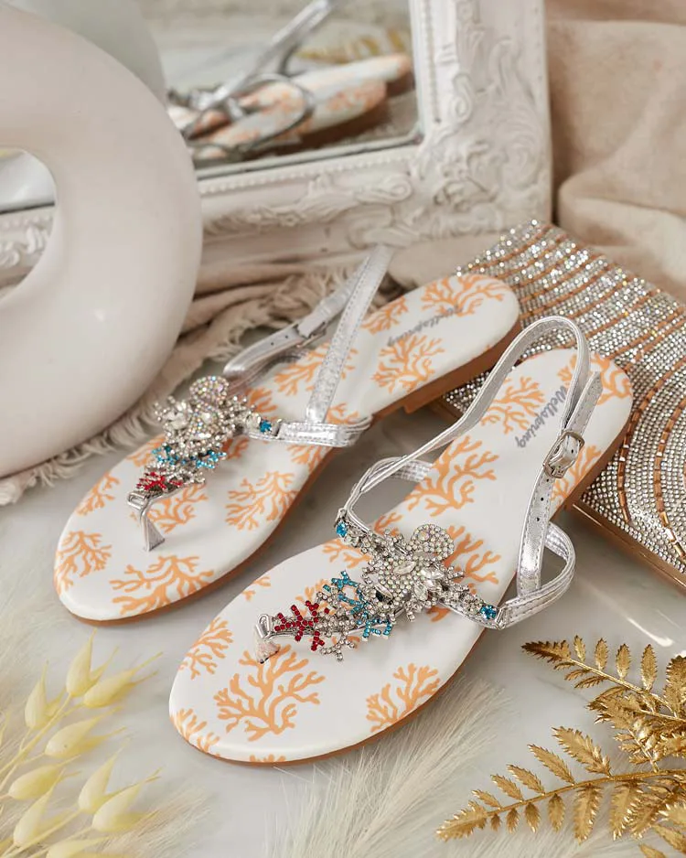 - Модные женские сандалии на плоской подошве, полностью выполненные из экокожи. Застегиваются на пряжку с декоративными элементами, которые придают им изысканность. Идеальны для летних прогулок и особых случаев!