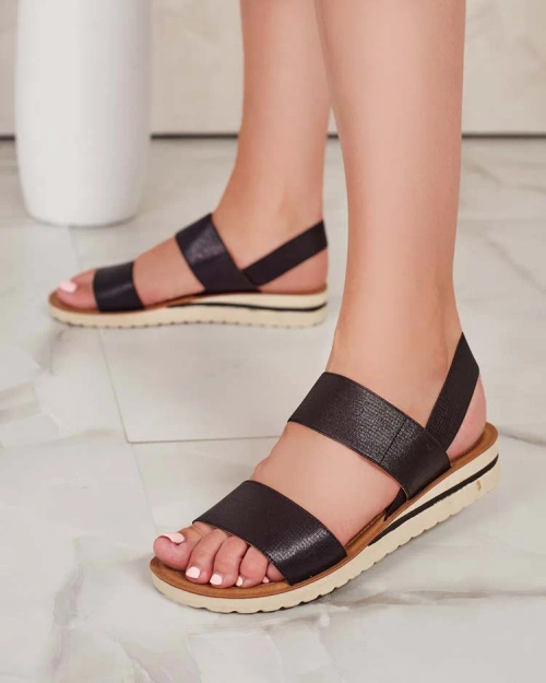 • Женские сандалии на плоской подошве - идеальная идея для жарких летних дней. Модель полностью выполнена из экокожи, которая дарит приятный комфорт. Обувь скользит по ноге, имеет резинку.