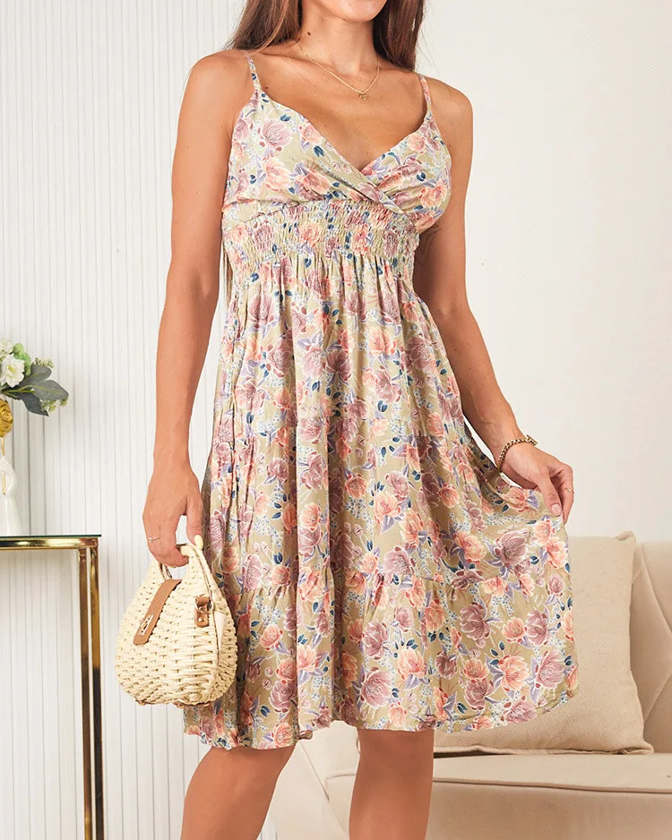 • Женское платье длиной до колена с бретелями и V-образным вырезом горловины. Модель украшена декоративным цветочным узором и эластичной резинкой по ширине спинки. Must have этого сезона! ПРИМЕЧАНИЕ: Точность измерения (+/-) 1 см. Размеры измерены в плоском