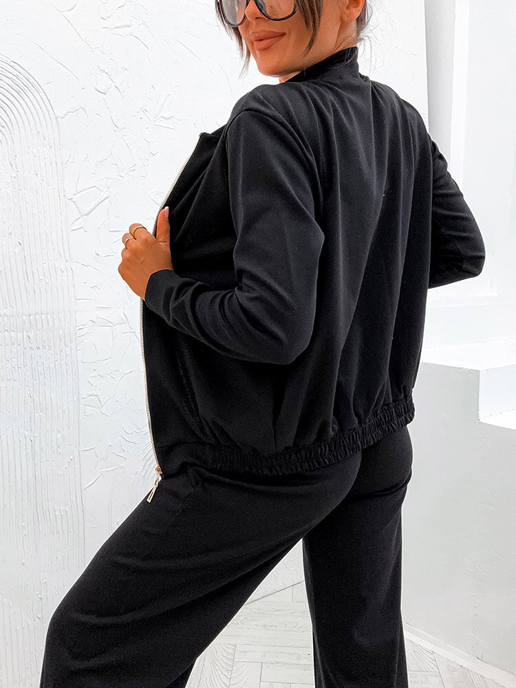 - Оригинальный женский комплект из приятного тканевого материала. Толстовка с длинными рукавами без капюшона, застегивается на молнию. Широкие брюки с эластичным поясом и 2 карманами. Элегантность и стиль в одном!