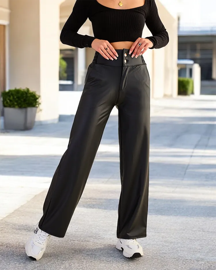 Royalfashion Женские широкие брюки из эко-кожи