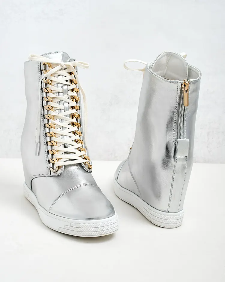 - Женские спортивные ботинки на каблуке, выполненные из экологичной кожи. Ботинки завязываются шнурками и имеют молнию сзади. Идеальны для создания стильных нарядов!