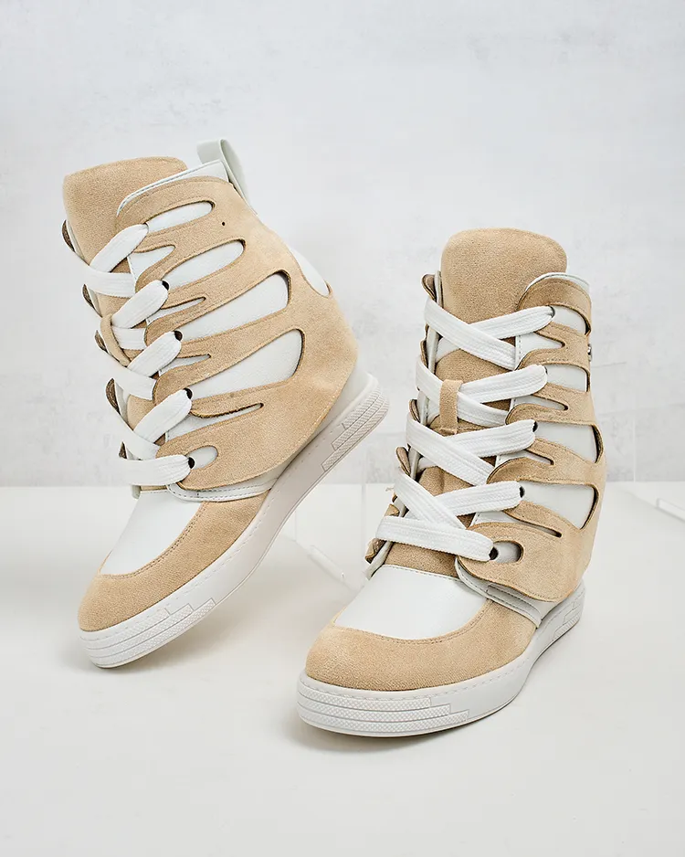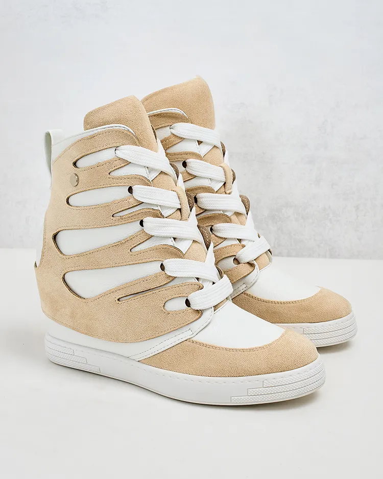 - Женские спортивные ботинки на каблуке, выполненные из экокожи. Обувь завязывается шнурками, внутри тканевая стелька. ОБУВЬ БОТИНКИ КРОССОВКИ PAMSTINSA