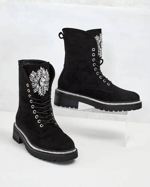 - Стильные ботинки-багги из экокожи. Ботинки зашнурованы, имеют утолщенную резиновую подошву и тканевую стельку. Ботинки украшены орнаментом на верхней части. Идеальный вариант для осени!