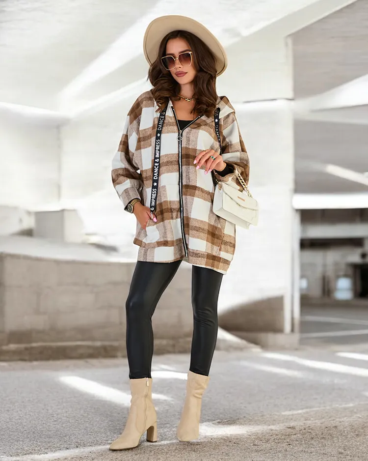 • Стильное женское пальто рубашечного типа с капюшоном. Пальто приталенного кроя с длинными рукавами, застежкой на молнию и 2 карманами. Отличный вариант для осени!
