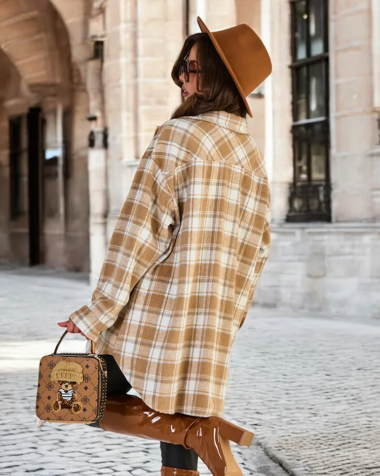 - Стильное женское пальто рубашечного типа с застежкой на пуговицы. Пальто кроя оверсайз имеет длинные рукава и 2 кармана. Отличный вариант для осени!