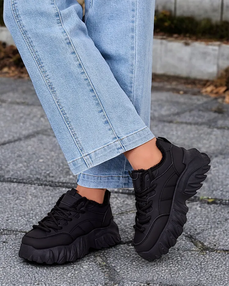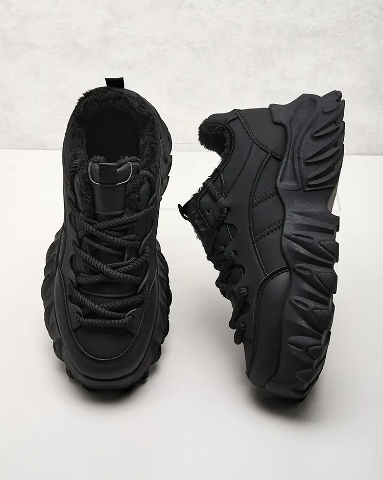 - Женская утепленная спортивная обувь типа кроссовок на толстой подошве. Верх на шнуровке из матовой экологичной кожи. Мягкий мех внутри. Супер дополнение к вашим зимним повседневным нарядам!