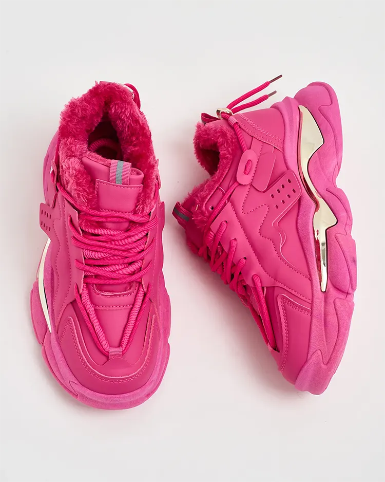 • Женские спортивные кроссовки на толстой подошве. Верх на шнуровке, выполнен из экологичной кожи. Внутренняя часть полностью утеплена мехом. Идеально подходят для спортивных нарядов!