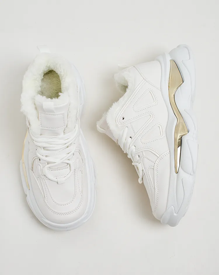 - Женские утепленные спортивные кроссовки на толстой подошве. Верх на шнуровке из экологичной кожи. Мягкий мех внутри. Супер дополнение к вашим зимним повседневным нарядам!