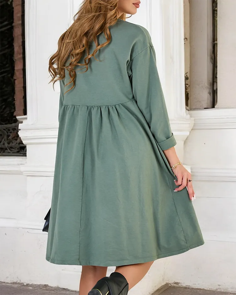 - Повседневное женское платье длиной до колена с длинными рукавами и круглым вырезом. Модель с декоративным принтом. Must have этого сезона! ПРИМЕЧАНИЕ: Точность измерения (+/-) 1 см. Размеры измерены в плоском виде.
