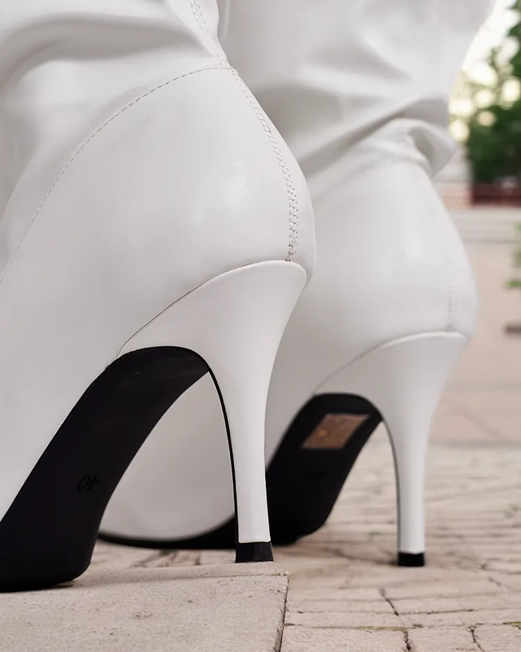 • Короткие женские сапоги на шпильке с носом на шпильке. Выполнены из экокожи, внутри стелька из экокожи. Модель слип-он, имеет ремешок в верхней части. Отличный выбор для осеннего стиля!