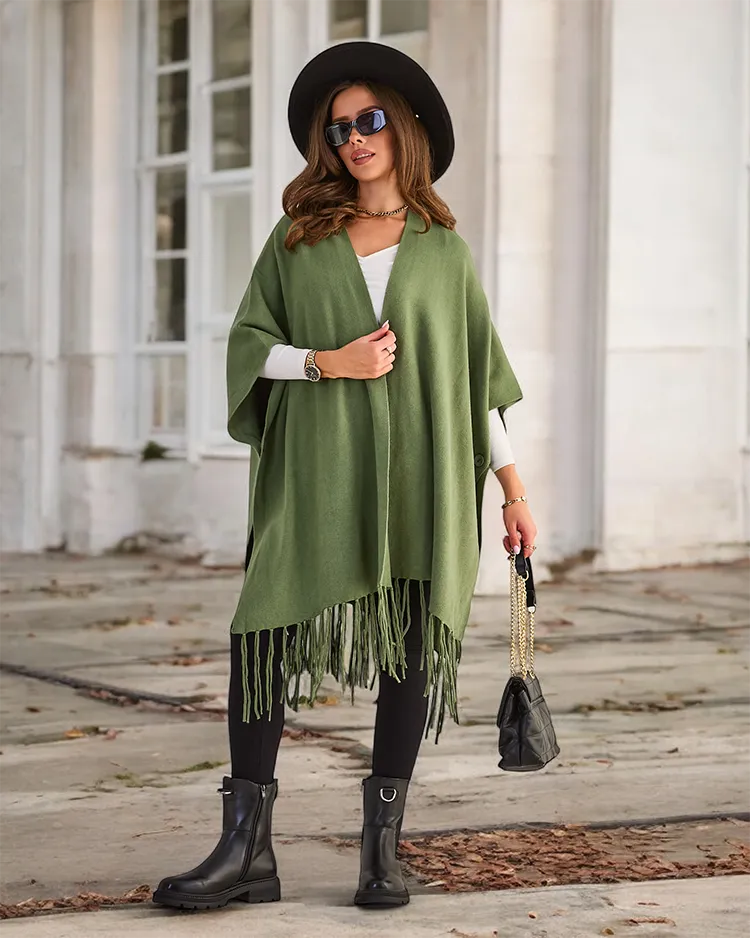 • Элегантное женское пончо с декоративными кисточками. Мягкий материал, тепло и стиль в одном. Идеально подходит для любого стиля. Доступно в различных цветах.