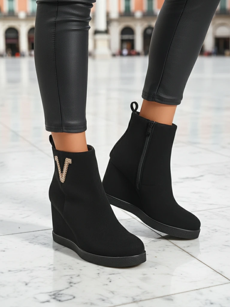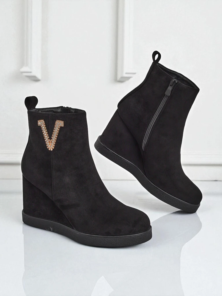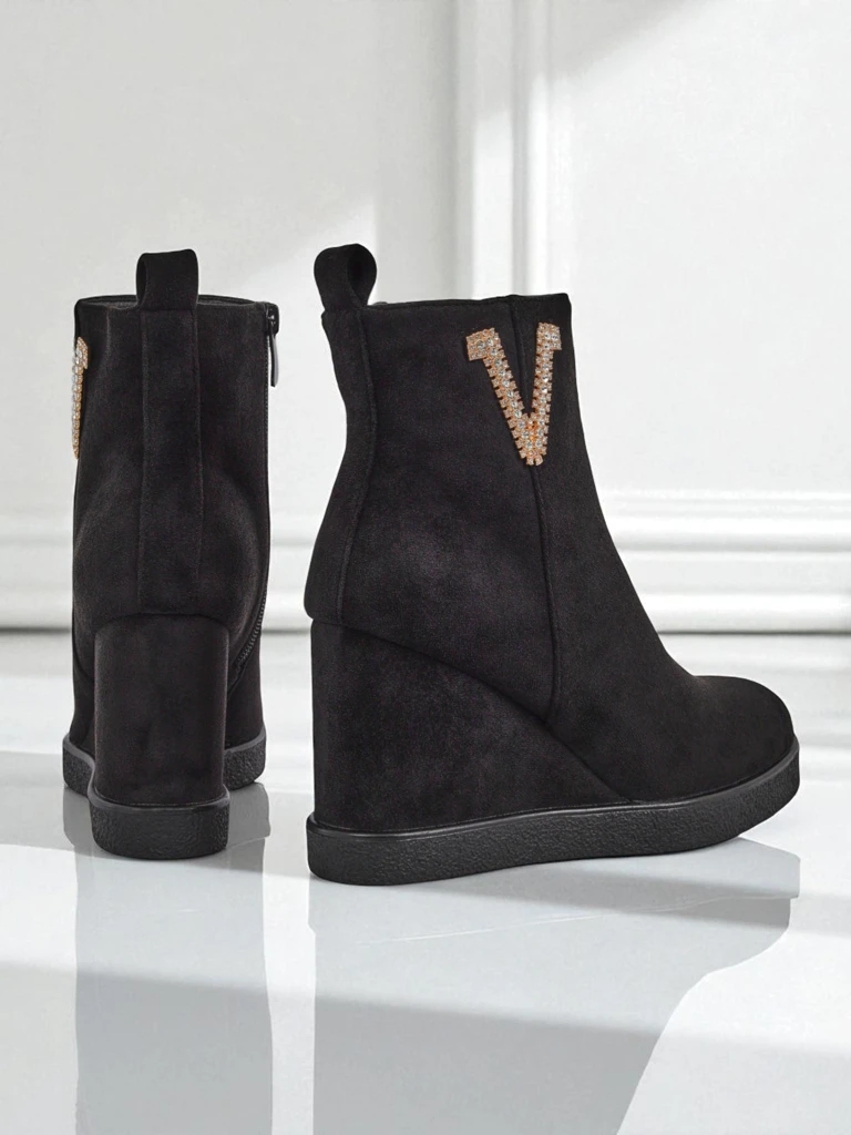 • Элегантные женские сапоги на каблуке, выполненные из эко-замши. Внутри обувь отделана мехом. Прекрасный выбор для осени!