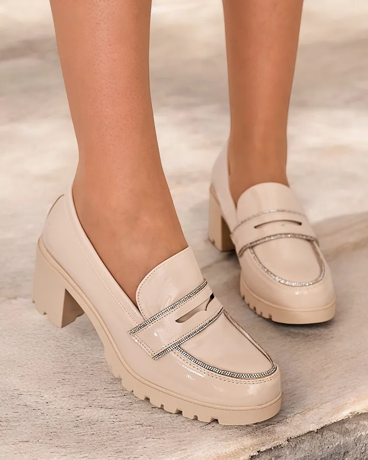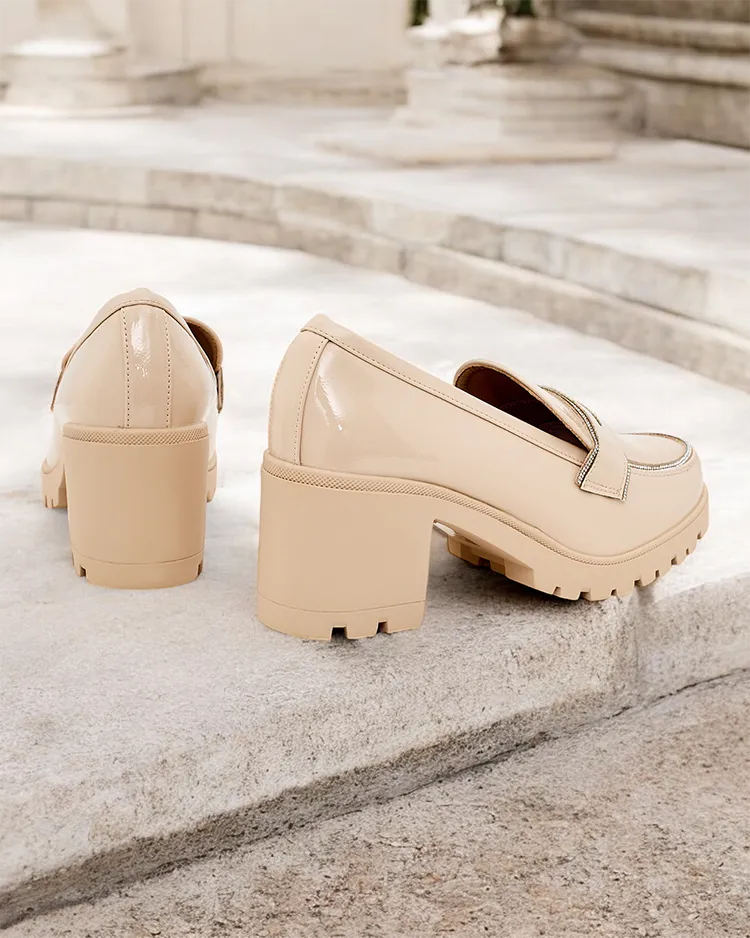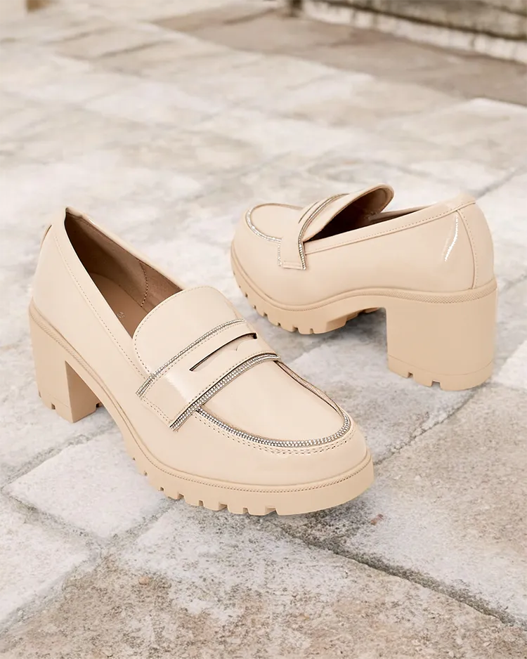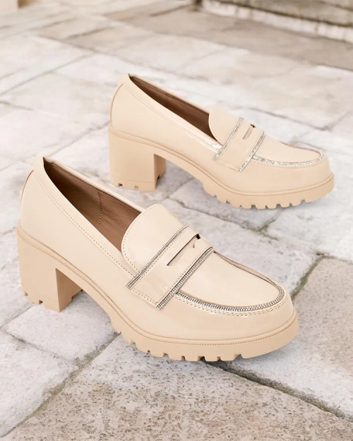 - Классические женские лоферы на каблуке. Модель выполнена из лакированной экокожи, стелька из экокожи. Обувь имеет нежное украшение на верхней части в виде циркония. Идеальная база для повседневной носки!