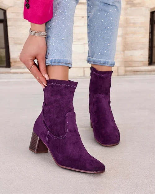 - Женские ботильоны на низком каблуке. Обувь из гибкой замши эко-кожи, которая отлично подходит по форме стопы. Модель имеет стельку из эко-кожи. Носите их для осеннего стиля!