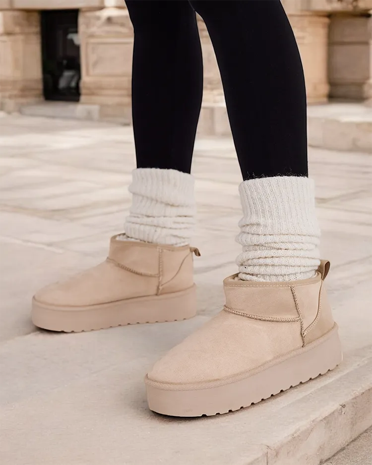 - Отличные женские зимние снежные ботинки на платформе. Верх выполнен из экозамши, подкладка из меха. Идеальная основа для зимы!