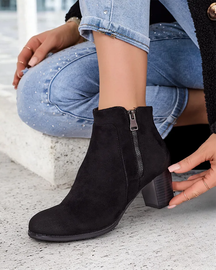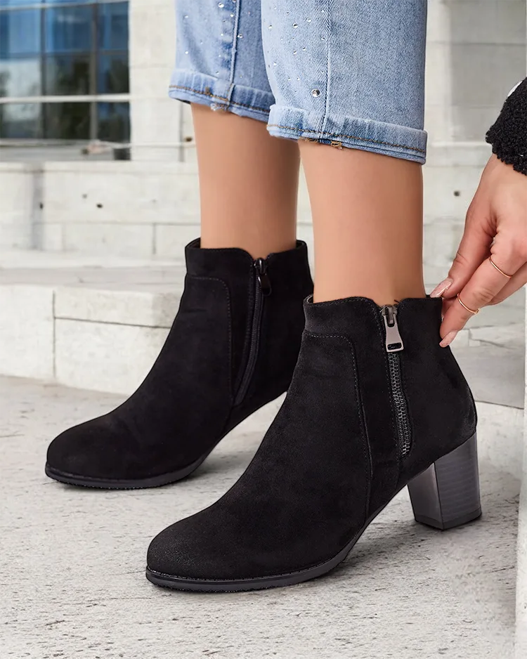 - Элегантные ботинки на небольшом каблуке - идеальное сочетание элегантности и комфорта. Модель изготовлена из экокожи и имеет мягкую подкладку, придавая стильный вид для любого случая. Обувь украшена декоративной молнией и потертостями на голенище.