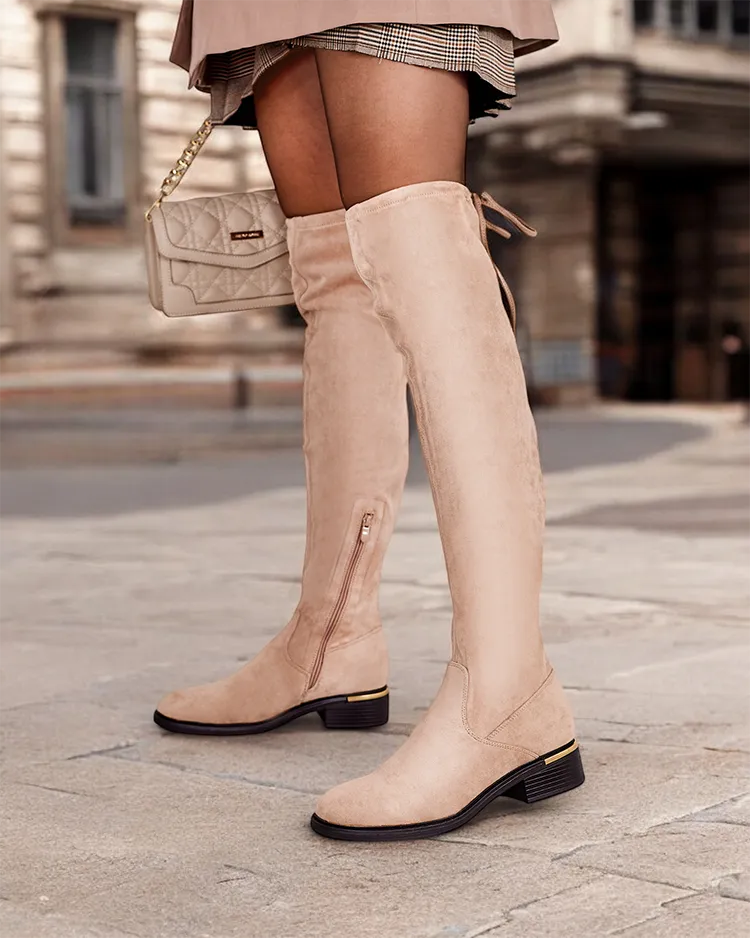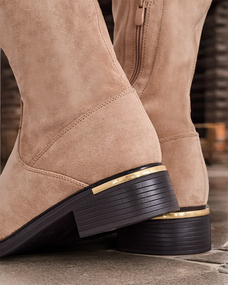 - Стильные женские ботфорты без задника на плоском каблуке. Верх выполнен из искусственной замши, внутри слегка утепленная стелька. Модель без застежек, с манжетом сверху. Идеально подходят для повседневных осенних нарядов!