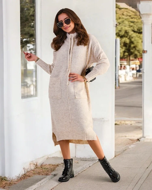 - Женское миди-свитерное платье с длинными рукавами. Модель из вязаной ткани. Должно быть в этом сезоне! Оно имеет стойку с ребристым отделкой. ВНИМАНИЕ: Точность измерения (+/-) 1 см. Размеры измеряются в разложенном виде.