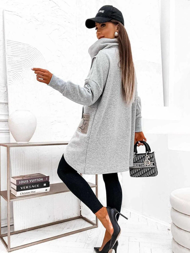 - Очень стильный женский длинный худи в стиле кенгуру, изготовленный из хлопкового материала. Модель с капюшоном имеет длинные рукава, большой карман и разрезы по бокам. Точность измерения (+/-) 1 см.