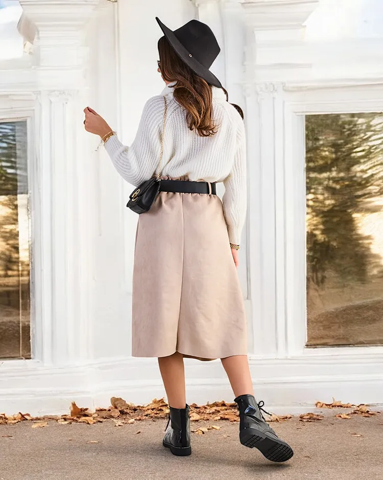 - Женская миди-юбка из мягкой ткани, похожей на замшу. Модель поставляется с поясом. Идеальная основа для множества уникальных нарядов! Примечание: Точность измерений (+/-) 1 см.