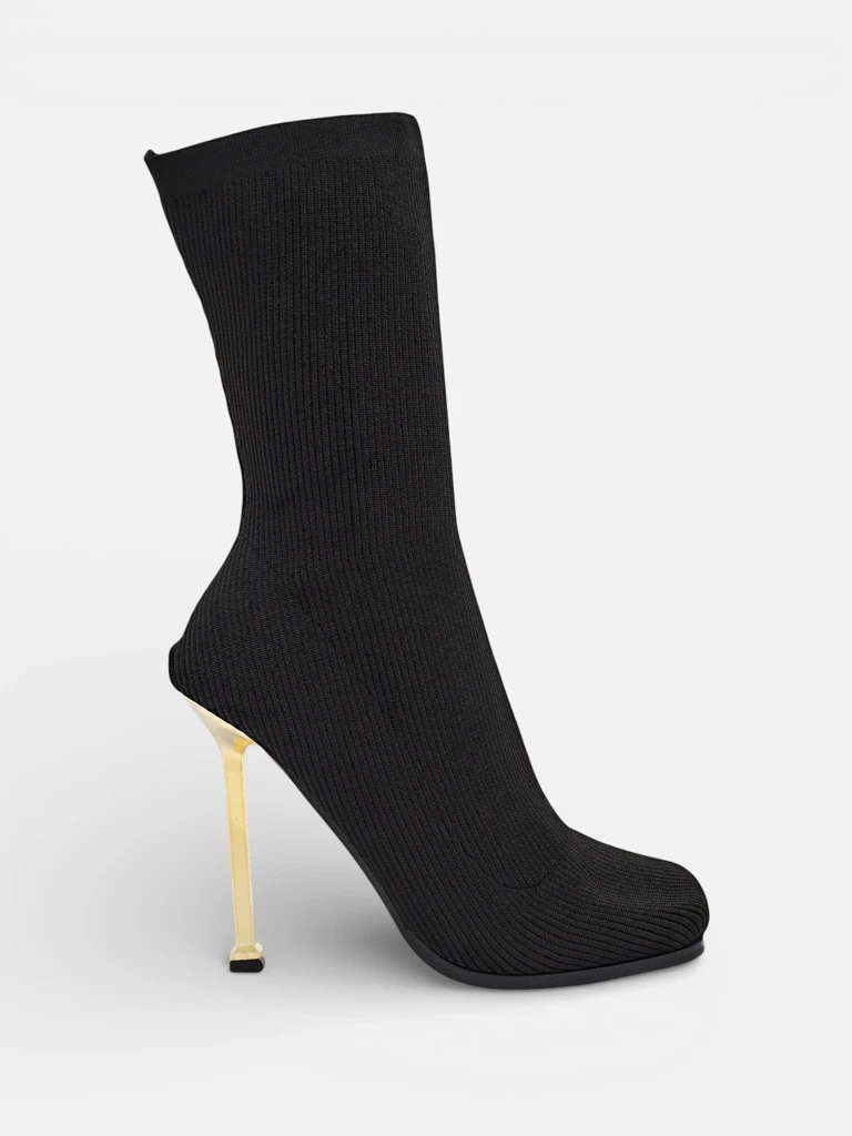 - Элегантные ботильоны на шпильке из эластичной ткани, без застежек. Модель имеет квадратный носок. Прекрасная обувь для осенних нарядов!